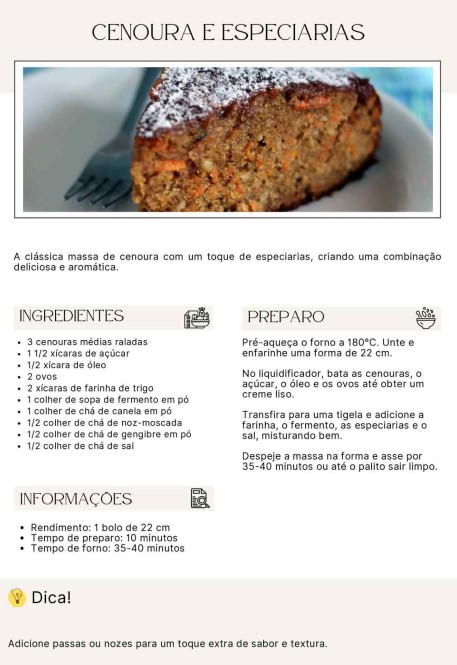 Bolo de Cenoura com Especiarias