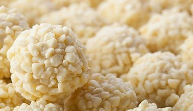 - Enrole a mistura em bolinhas pequenas. (Coloque um pouco de manteiga na mão para ajudar)