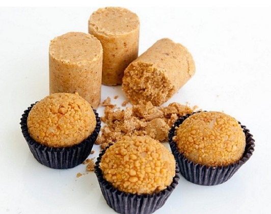 - Enrole a mistura em bolinhas pequenas. (Coloque um pouco de manteiga na mão para ajudar)