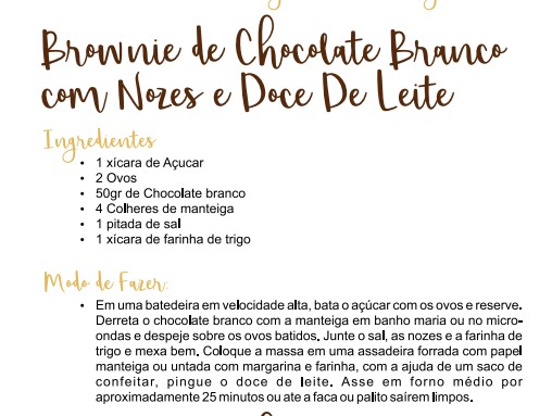 Brownie de Chocolate Branco com Nozes e Doce de Leite