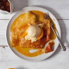 Para servir, disponha as crêpes em um prato aquecido, adicione os 60 ml restantes de Cointreau e, com cuidado, acenda o fogo para flambar.