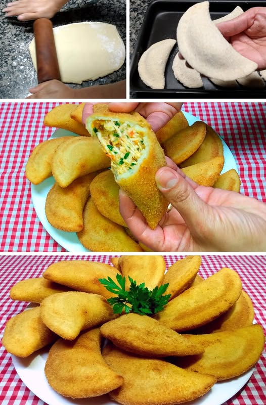 Entre os recheios comuns, aposte em frango desfiado cremoso, carne moída bem temperada, presunto e queijo, queijo com ervas, palmito cremoso ou camarão ao molho branco mais espesso. O importante é que o recheio seja saboroso, firme e não muito líquido, para não estourar na fritura.