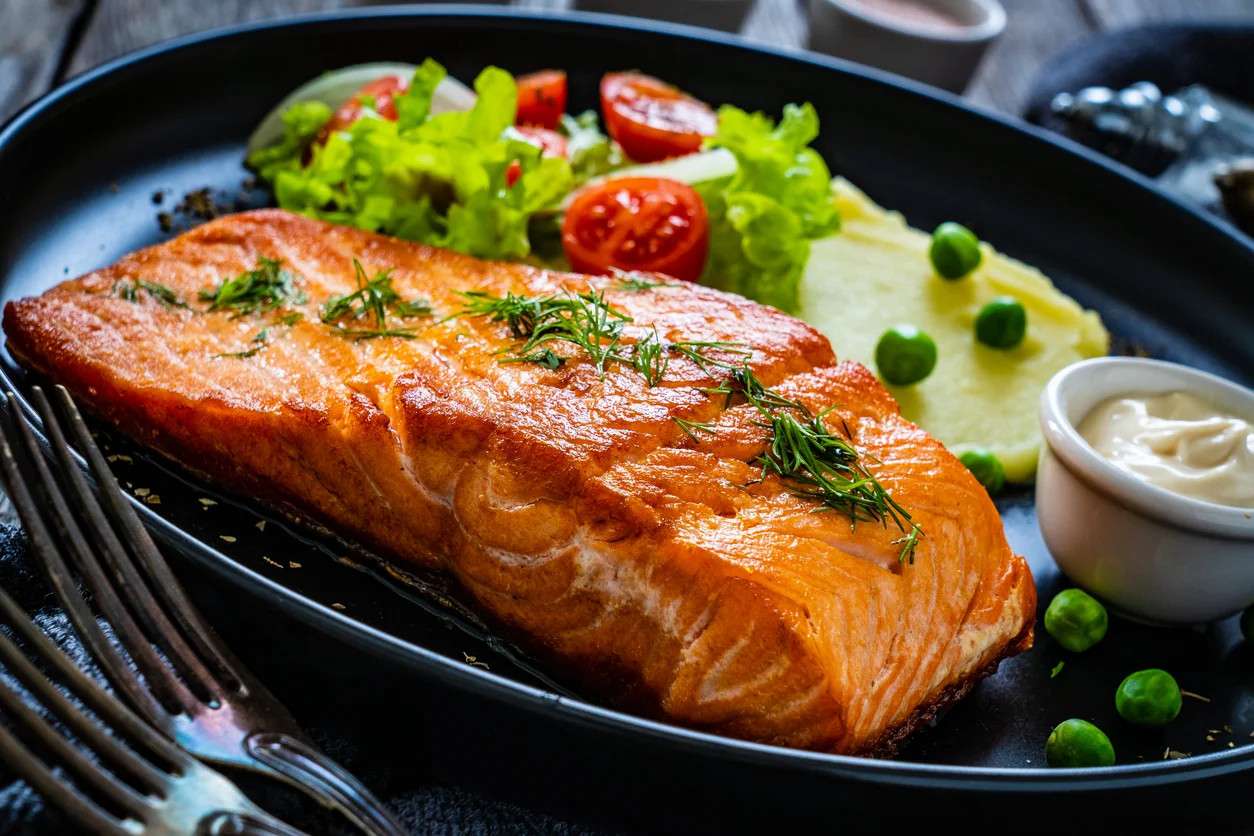 Uma refeição completa, saudável e deliciosa! Este salmão grelhado é acompanhado por legumes macios e um molho rico e aromático, criando um prato balanceado e irresistível. É a receita perfeita para quem busca uma opção rápida, nutritiva e cheia de sabor.