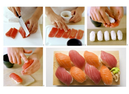 Finalize. Vire o nigiri, deixando o peixe por cima, e pressione a fatia de peixe suavemente com o polegar.